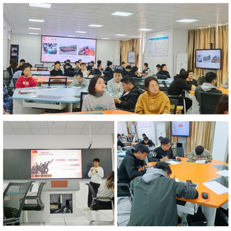特等奖学金获得者、物流191郭森同学主持活动并做了题为《弘扬长征精神》党史宣讲报告,院实验实训中心助教黄顺凯同学及参加劳动教育实践活动的学生出席本次活动。