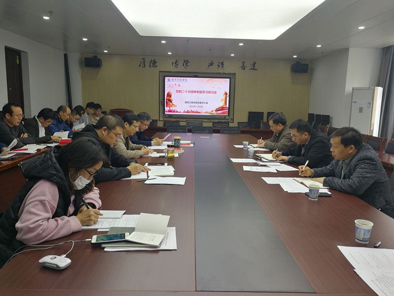 118日下午,建筑工程学院党委理论学习中心组召开党的二十大精神专题学习研讨会,校党委常委、副校长郑健出席指导,二级党组织理论学习旁听工作组第五组成员邓英扣、任家钱等列席会议,学院党委理论学习中心组全体成员参加会议。会议由学院党委书记李烨主持。