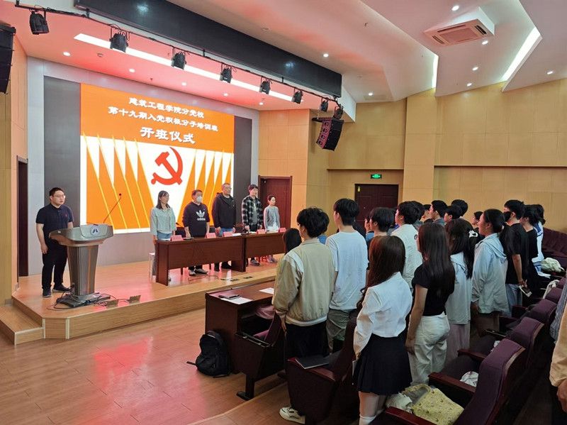 为深入学习贯彻习近平新时代中国特色社会主义思想和党的二十大精神,进一步加强入党积极分子培养教育,筑牢理想信念根基,4月9日下午,建筑工程学院第十九期入党积极分子培训班开班仪式于C座7楼报告厅举行,学院党委副书记张礼波,各专业学生党支部书记、培训班全体学员参加开班仪式。仪式由培训班班主任程亚运主持。