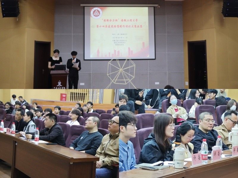 为深入贯彻落实乡村振兴战略,激发青年学子的创新精神与实践能力,4月9日在C座3楼报告厅成功举办了“安徽合力杯”第十四届建筑模型设计制作大赛决赛。本届大赛由校教育发展基金会、校团委主办,建筑工程学院团委承办,比赛邀请设计学院齐宛苑、吴劲松,建筑工程学院郭方棚、俞梦璇、伍蕾、王灿等老师作为评委,院党委副书记张礼波、团委书记、辅导员出席决赛现场。