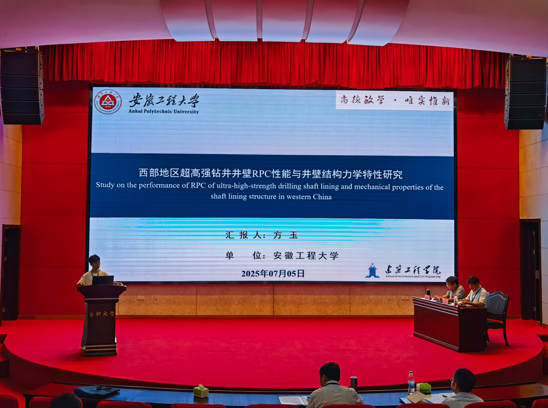 本次会议以地下工程与风险防控为主题,聚焦岩土工程前沿技术、地质灾害防治、地下空间开发等热点议题,来自中国科学技术大学、合肥工业大学、中铁四局集团工程技术研究院、北京城建设计发展股份有限公司合肥分院、安徽省交通规划设计研究总院股份有限公司等相关领域的专家学者分享了岩土与地下工程领域的最新研究成果与关键技术。会上,我院方玉博士作了题为《西部地区超高强钻井井壁RPC性能与井壁结构力学特性研究》的学术报告,并与在场专家学者进行了深入交流与探讨。