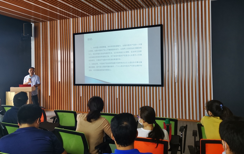 吴小太以《学习党史,增强党性》为题,给大家讲解了中国共产党在新民主主义革命时期、社会主义革命和建设时期、中国特色社会主义发展时期三个阶段的光辉历史,强调了学习党史的重要意义。