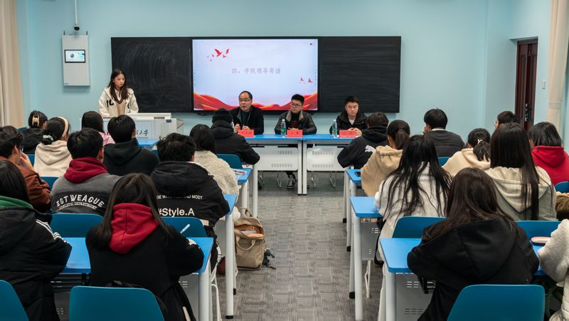 江政宣读《数理与金融学院青马班管理办法》,要求学员以高标准、严要求对待自己,遵守培训班规章制度。区块链231班张子俊作为第七期青马班学员代表发言,他表示要用党的科学理论武装自己,在青年学生中发挥榜样示范作用。