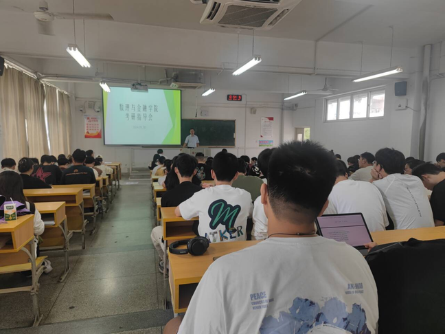 潘海峰以详实的数据和生动的讲解,从学院的学科优势、导师团队、就业前景等维度,全面剖析了学院系统科学、应用数学、金融等研究生专业的独特魅力。他特别提醒同学们,在冲刺阶段的最后两个多月,应深思熟虑,评估自我,坚定信念,保持韧性,直至最后一刻也不轻言放弃。